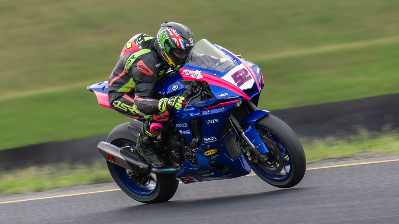 While Leanne was enjoying her racing more than ever, there was a constant niggle that she was being held back. Was it the bike, or was it her age, beginning to nibble away at her ability? That question was answered at the end of 2023 when fellow competitors' constant praise of Yamaha's YZF-R1 convinced Leanne to upgrade and answer the question once and for all. "As soon as I rode the YZF-R1, I knew it had been the bike; I connected with the Yamaha instantly," she reveals. "Pretty much straight away, I was rolling off personal best times. A funny thing: I always said I would retire if I could do a 1:34 lap of SMSP because it's something I had been chasing for a while. When I got on the R1, it just happened, so instead of hanging up my helmet on a high, it made me want to push even more. With the help of my awesome pit crew, Tom and Dan Harrison, as well as husband Rob, I feel like I'm riding better than ever. I feel like I have much more in me, and I'm sure I can go quicker."