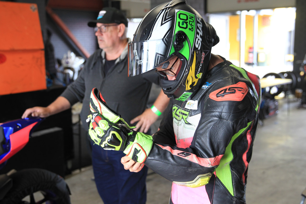 When Rob revealed his ambitions to go racing, Leanne was happy to help out as pit crew, but it didn’t take long for the bug to bite. "I decided to have a crack at post-classic racing on a 125GP bike and that seemed to satisfy the itch, until 2020 when I decided to give modern racing a go, first with a 600cc bike and then a full-blooded 1000cc superbike, then I was really hooked."