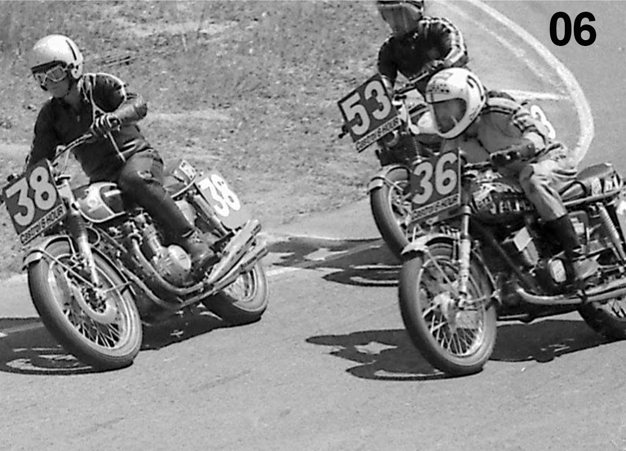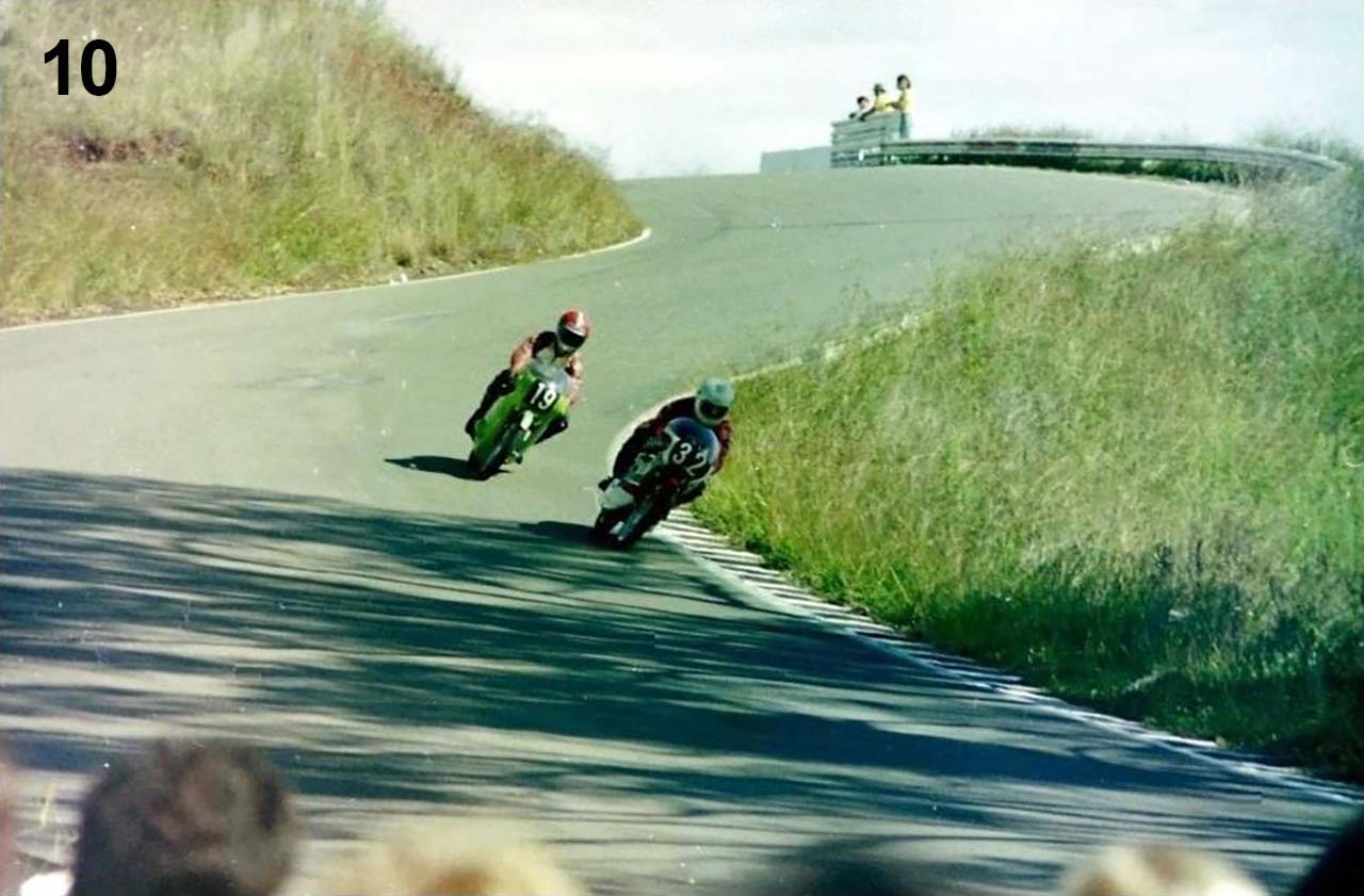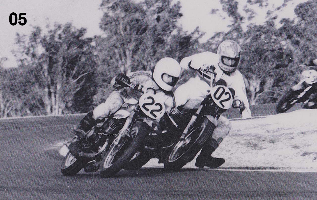 A kitted R5 350 Yamaha twin, sponsored by his partner Robyn, followed and brought Geoff much success, including three memorable scraps at Oran Park and Amaroo Park with a young Gregg Hansford.