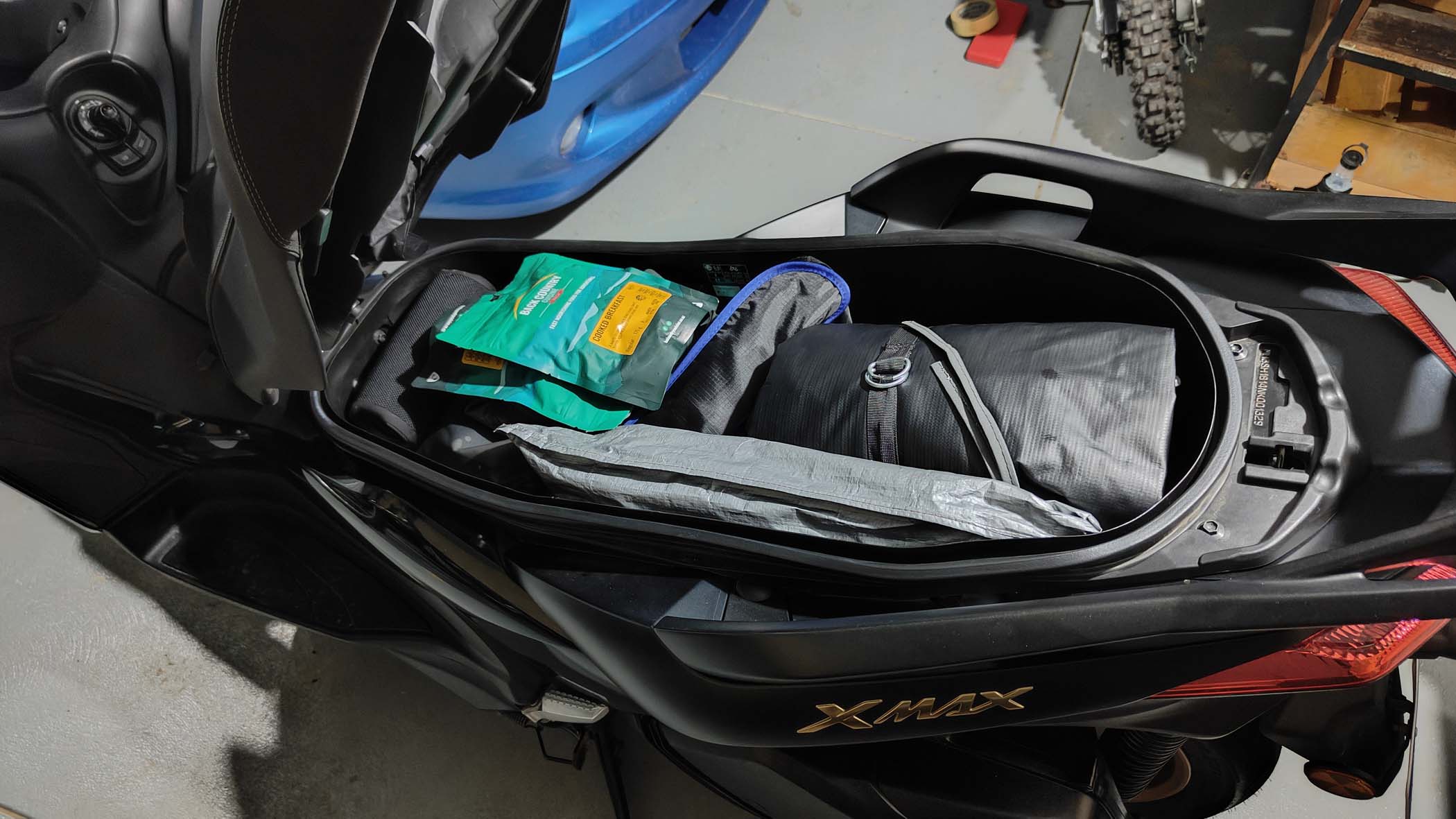 The other big winner for Jay was the storage capacity. His swag, ten litres of water, ten ration packets of food and a Bluetooth speaker were all packed into the under-seat storage area. "My clothes, cooking equipment and misc stuff went into or next to the top box, while a little tank bag carried my electronics and all-important road snacks."