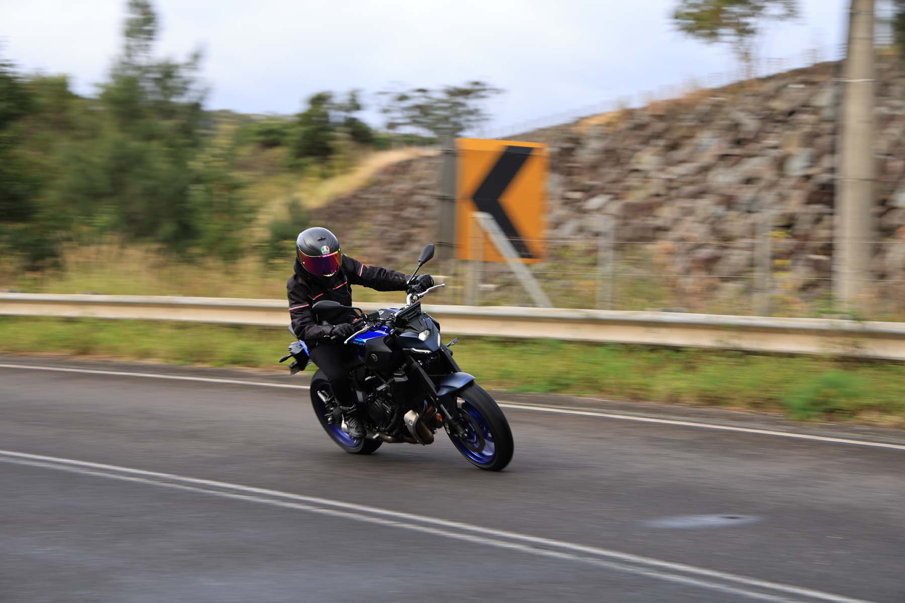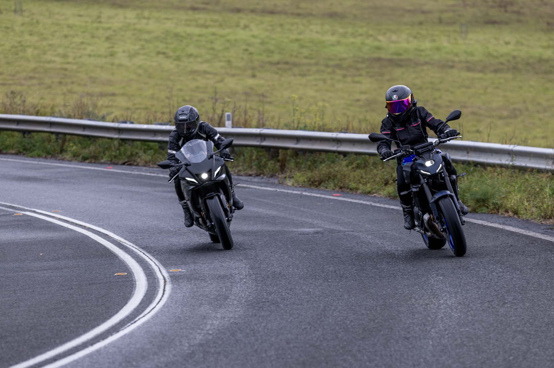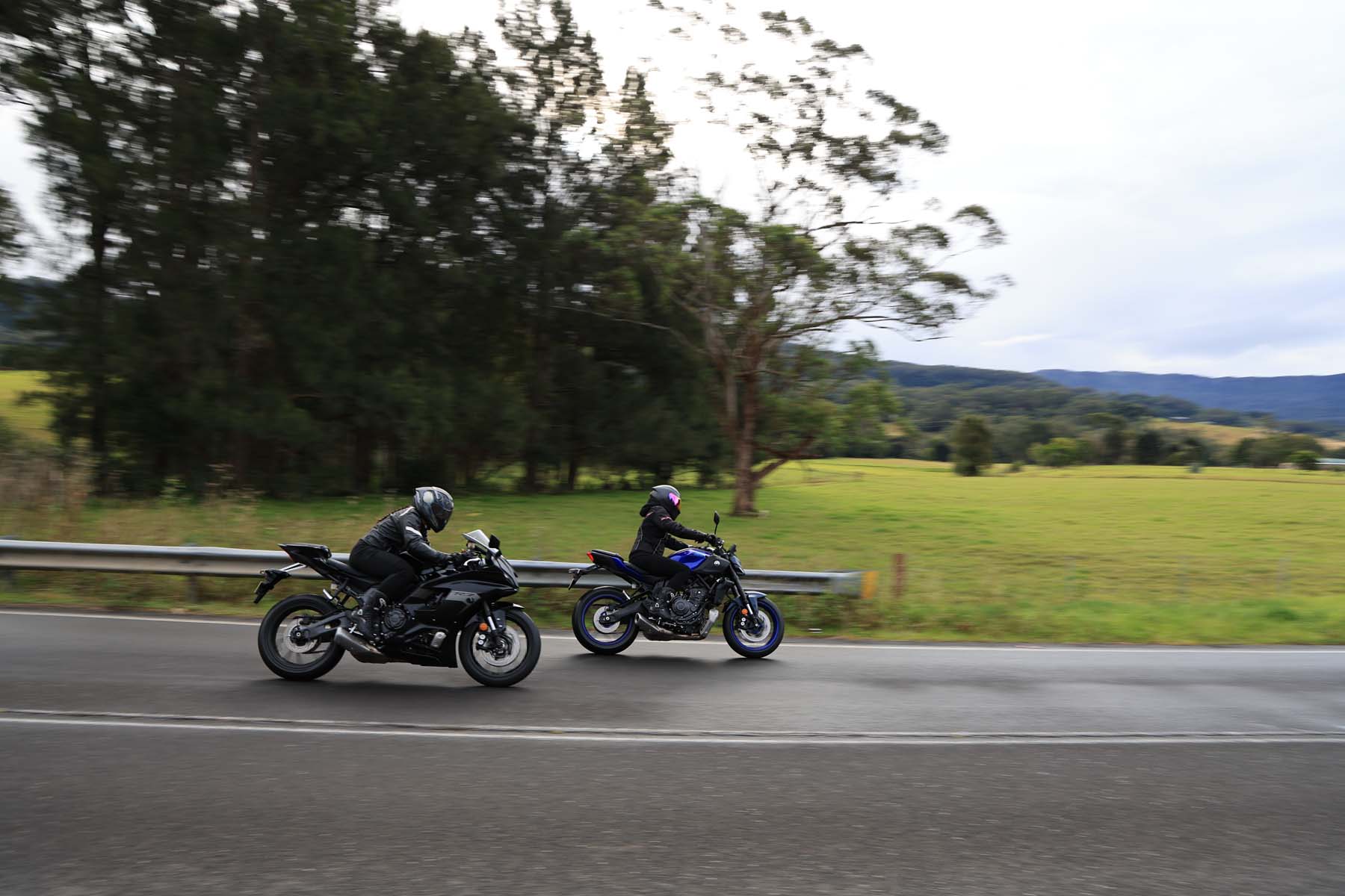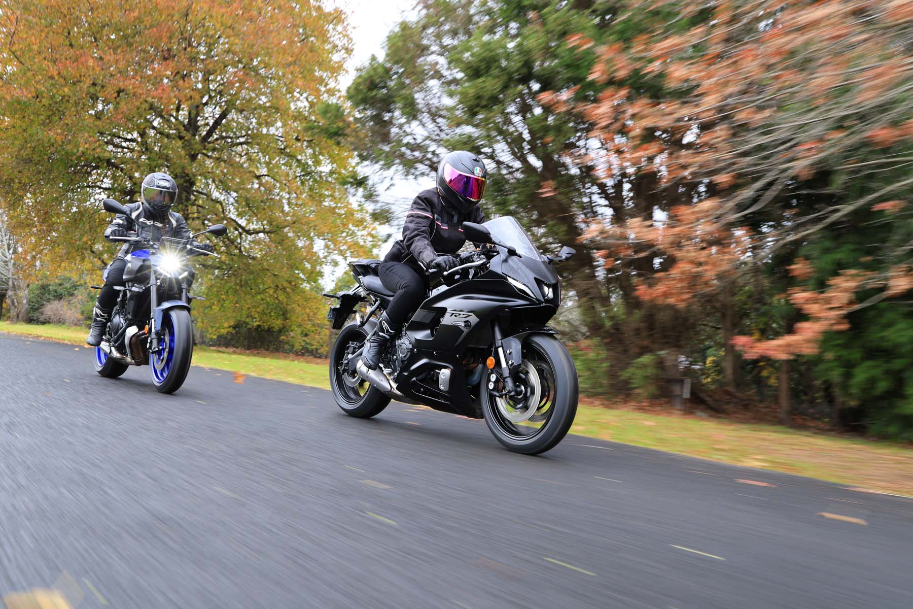 In contrast, Natasha, arrived at the meeting point riding a YZF-R7 Matt Black, captivated by its sporty intent, something she loved about here first motorcycle, a YZF-R3. "You’re so tucked in on the R7; it’s a much racier seating position," she explains. “The footpegs and seat are higher than the MT-07 providing a sporty forward-leaning stance to emphasise its racing heritage,” she adds, "It’s not uncomfortable, but you’re certainly slanted forward, and the fairing slices cleanly through the wind."