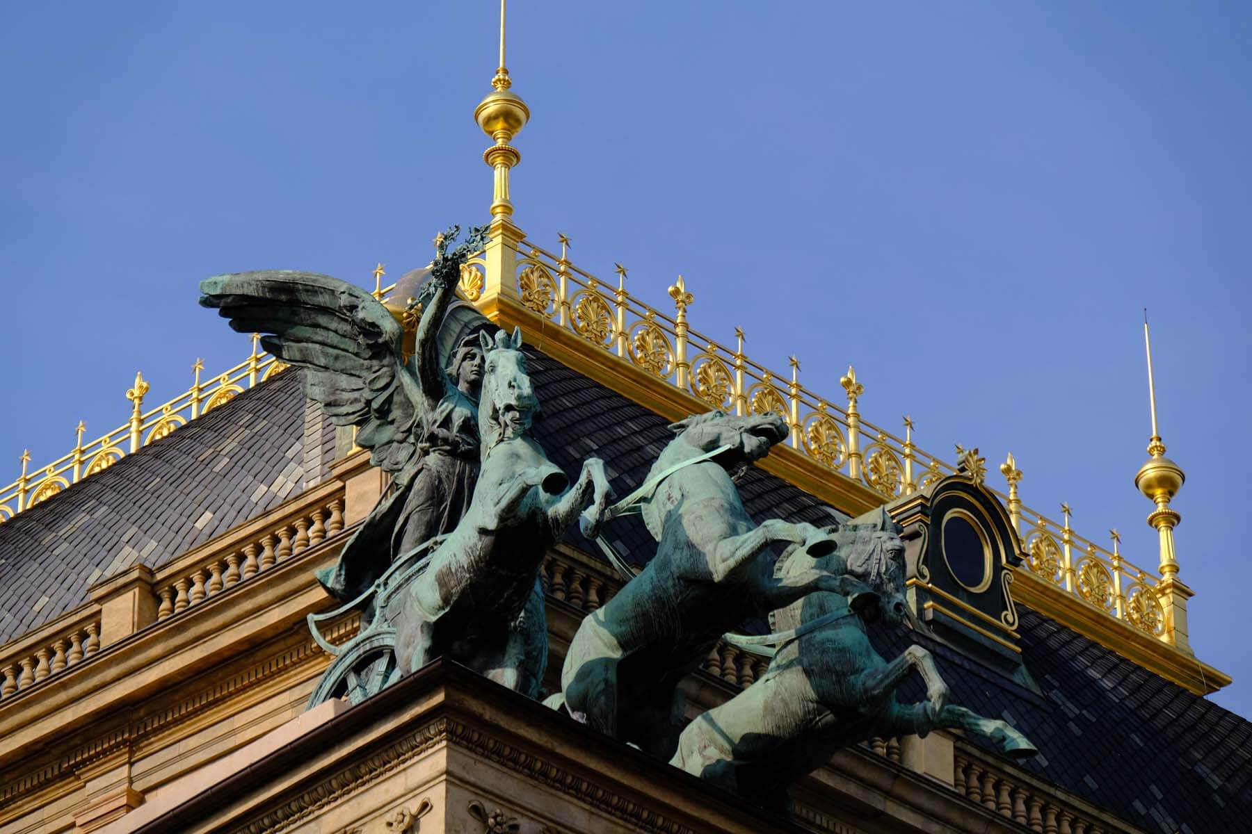 Once you’ve parked your bike and locked it to that pole, you can take advantage of the many pedestrian areas of the city. Locking your biker, by the way, is a good idea. Theft of vehicles is sadly still common in eastern Europe; most stolen cars and bikes end up in Russia, I’ve been told. Prague is safe otherwise, though, and full of things to see like Wenceslas Square and Prague Castle. The castle is linked to the Old Town by Charles Bridge with its thoroughly romantic promenade across the Vltava River. Its gallery of statues has been standing since 1357.